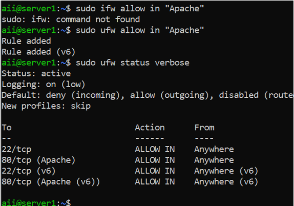 sudo ufw allow in apache2