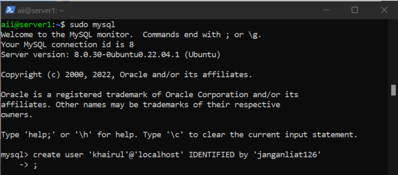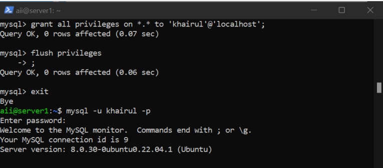 Buat User & Berikan Hak Istimewa Pada User Tersebut