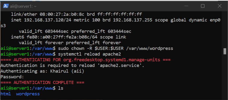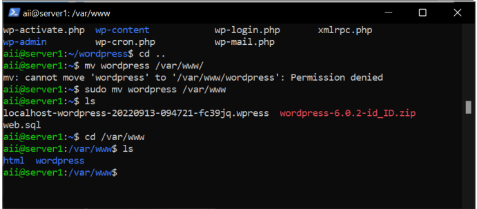 sudo chown -R USER$USER /var/www/html/wordpress