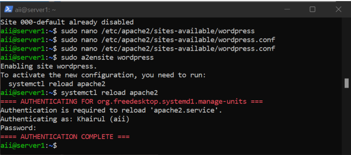 sudo a2ensite wordpress