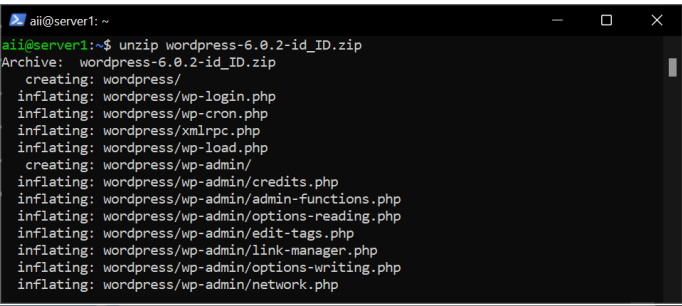 unzip {nama file wordpress nya}