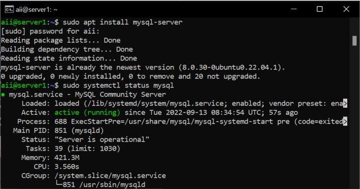 sudo apt install mysql-server