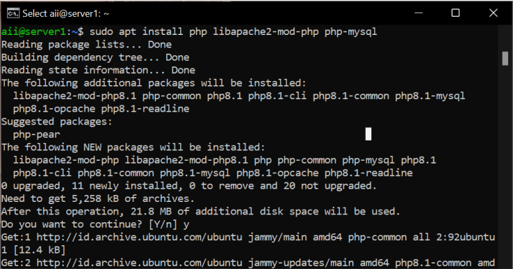sudo apt install php libapache2-mod-php php-mysql
