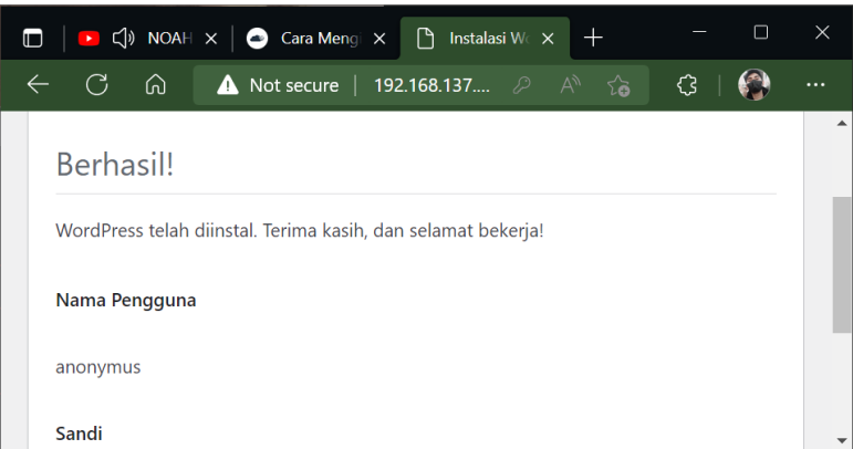 Jika Sudah Melakukan Semua Step di atas, selanjutnya lakukan penginstallan wordpress nya di web browser,