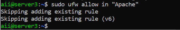 sudo ufw allow in ‘Apache2’