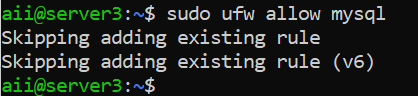 sudo ufw allow mysql” or “sudo ufw allow 3306