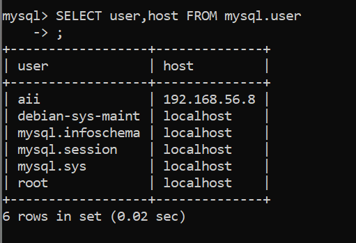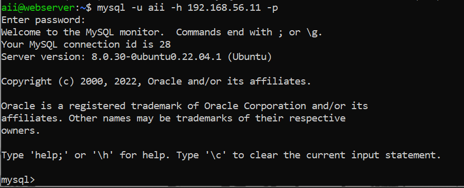 mysql -u aii -h 192.168.56.11 -p